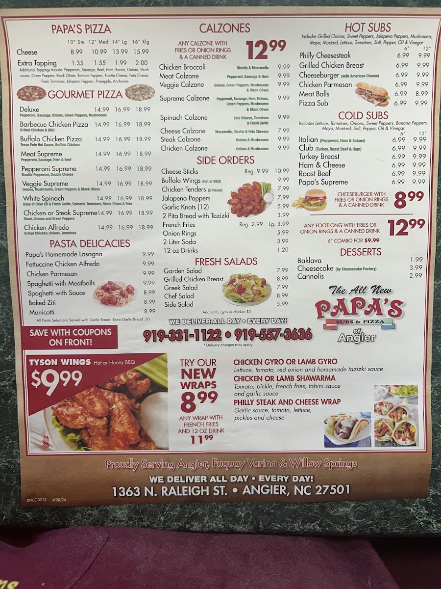 With a range of options for every taste and budget, Papa's Subs & Pizza is the ideal spot for a casual and satisfying meal in Angier.